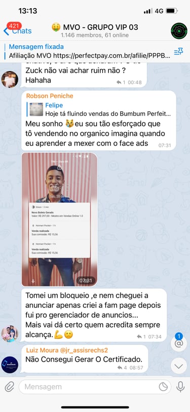 Acesso ao grupo privado no Telegram.